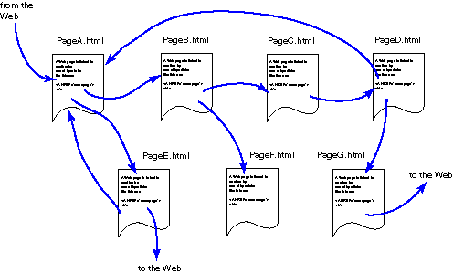 It is the hyperlinks between Web pages that form the Web-like structure of the Web. In the picture, each rectangle represents a Web page. Each arrow represents a link: